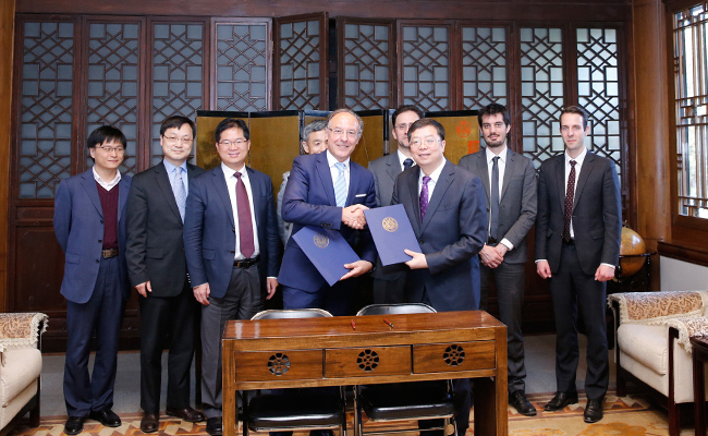 4月13日,瑞士日内瓦大学校长伊夫·弗吕克格尔(Yves Flückiger)教授访问乐鱼在线平台。乐鱼在线平台校长邱勇在工字厅会见了弗吕克格尔教授一行。当天,两校签署合作备忘录,将在教育和科研领域进一步加强合作。