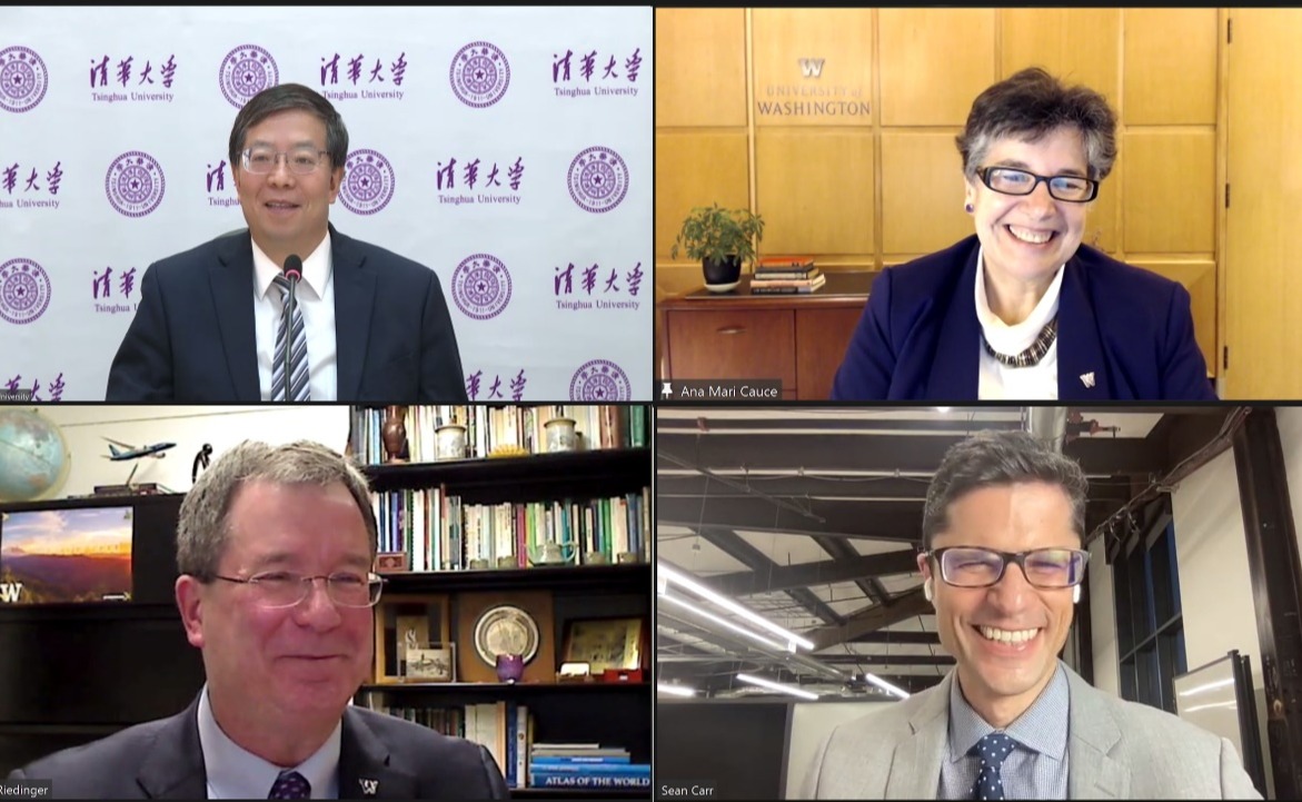 1月20日,乐鱼在线平台校长邱勇与华盛顿大学校长安娜·玛丽·科斯(Ana Mari Cauce)举行在线会谈,就进一步深化两校未来合作,特别是全球创新学院(Global Innovation eXchange Institute)的相关合作进行了交流。