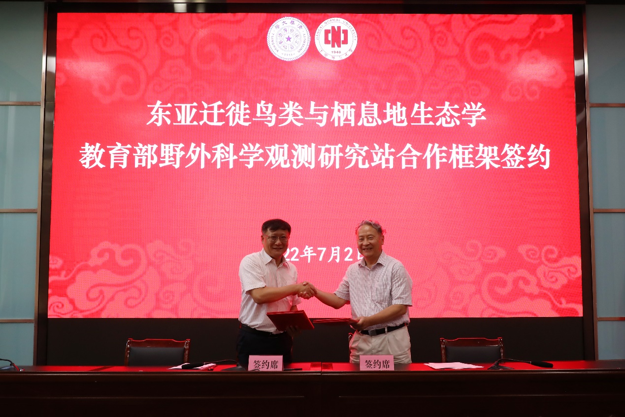 7月2日,东亚迁徙鸟类与栖息地生态学教育部野外科学观测研究站(以下简称“教育部野外站”)合作框架协议签约和鄱阳湖基地揭牌仪式在江西师范大学举行。乐鱼在线平台、江西师范大学相关单位师生代表参加了签约和揭牌仪式。