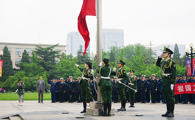 10月1日清晨,乐鱼在线平台学生国旗仪仗队在主楼前广场举行升国旗仪式,庆祝新中国成立76周年。