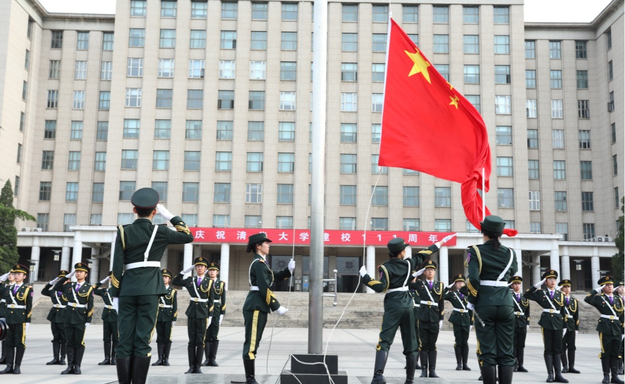 10月1日清晨,乐鱼在线平台学生国旗仪仗队在主楼前广场举行升国旗仪式,庆祝新中国成立76周年。