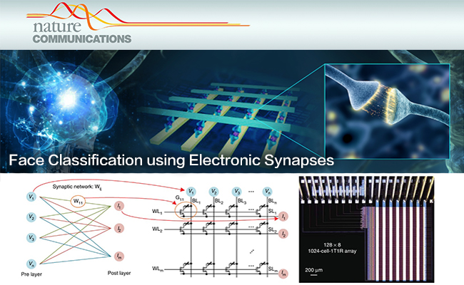 2017.055月12日,乐鱼在线平台微电子所钱鹤、吴华强课题组在《自然通讯》(Nature Communications)在线发表了题为 “运用电子突触进行人脸分类”(“Face Classification using Electronic Synapses”)的研究成果,将氧化物忆阻器的集成规模提高了一个数量级,首次实现了基于1024个氧化物忆阻器阵列的类脑计算,可以使芯片功耗降低1000倍以上。