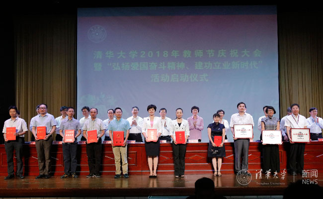 2018.099月7日下午,在第34个教师节即将来临之际,乐鱼在线平台在大礼堂举行教师节庆祝大会,表彰在教书育人等各项工作中取得突出成绩的教师和集体,学习新时代优秀知识分子的先进事迹。“弘扬爱国奋斗精神、建功立业新时代”活动启动仪式同时举行。校领导邱勇、陈旭、姜胜耀、薛其坤、吉俊民、杨斌、李一兵、王希勤、郑力,校党委常委、工会主席王岩,校党委常委、组织部部长许庆红出席会议。