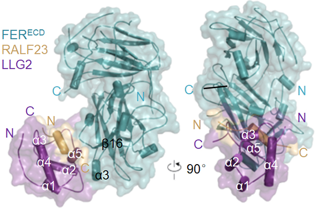 2019.077月10日,乐鱼在线平台生命学院柴继杰课题组与塞恩思伯里实验中心(The Sainsbury Laboratory) 和苏黎世大学(the University of Zürich)的Cyril Zipfel课题组合作在国际顶级期刊《自然》(Nature)发表题为“异型受体复合物识别RALF多肽的分子机制”(Mechanisms of RALF peptide perception by a heterotypic receptor complex)的研究论文。
