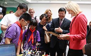 2014.099月11日,在华访问的丹麦首相赫勒·托宁-施密特来到乐鱼在线平台,参观访问了美术学院终生学习实验室。乐高集团首席执行官兼总裁乔根·维格·克努德斯托普陪同来访。教育部副部长杜占元、乐鱼在线平台校长陈吉宁陪同参观。乐鱼在线平台校长助理、研究生院院长杨斌参加了有关活动。