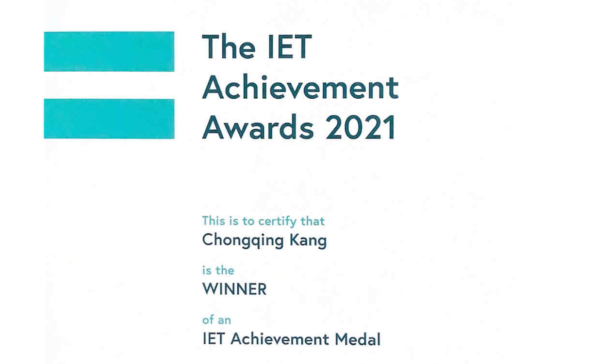 2021.10电机系康重庆教授荣获英国工程技术学会成就奖章