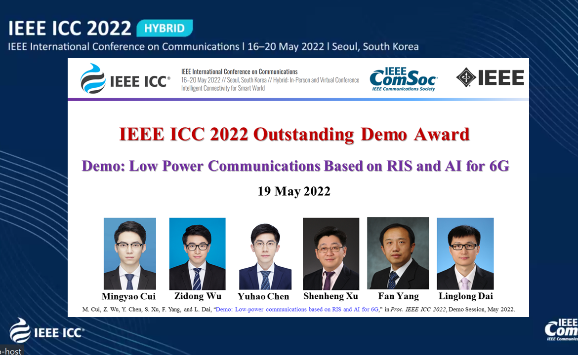 2022.05电子系通信系统原型机获IEEE ICC 2022杰出演示奖