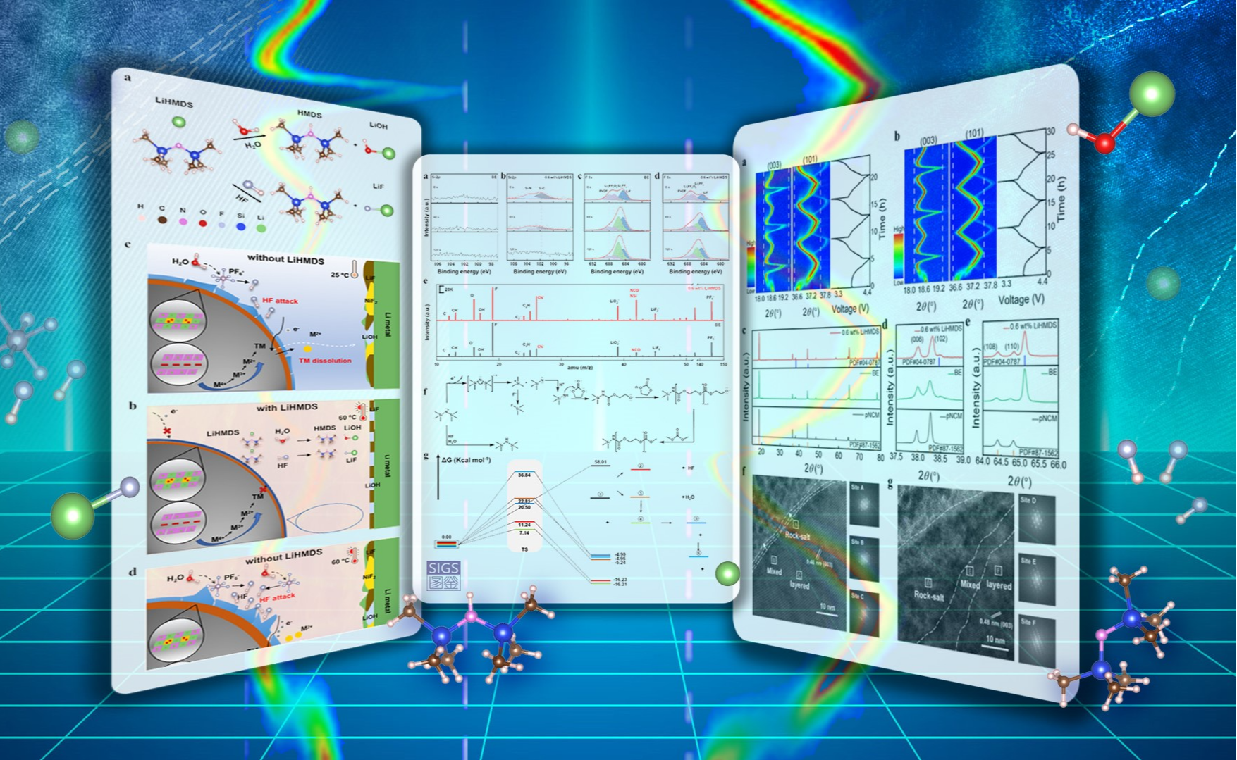 近日,乐鱼在线平台深圳国际研究生院贺艳兵课题组开发了一种多功能的六甲基二硅胺基锂(LiHMDS)电解液添加剂,发现在典型的含氟碳酸酯非水电解液中仅添加0.6wt%的LiHMDS,就能使Li||LiNi0.8Co0.1Mn0.1O2(NCM811)电池在25°C−60°C温度范围和4.5V高截止电压下稳...