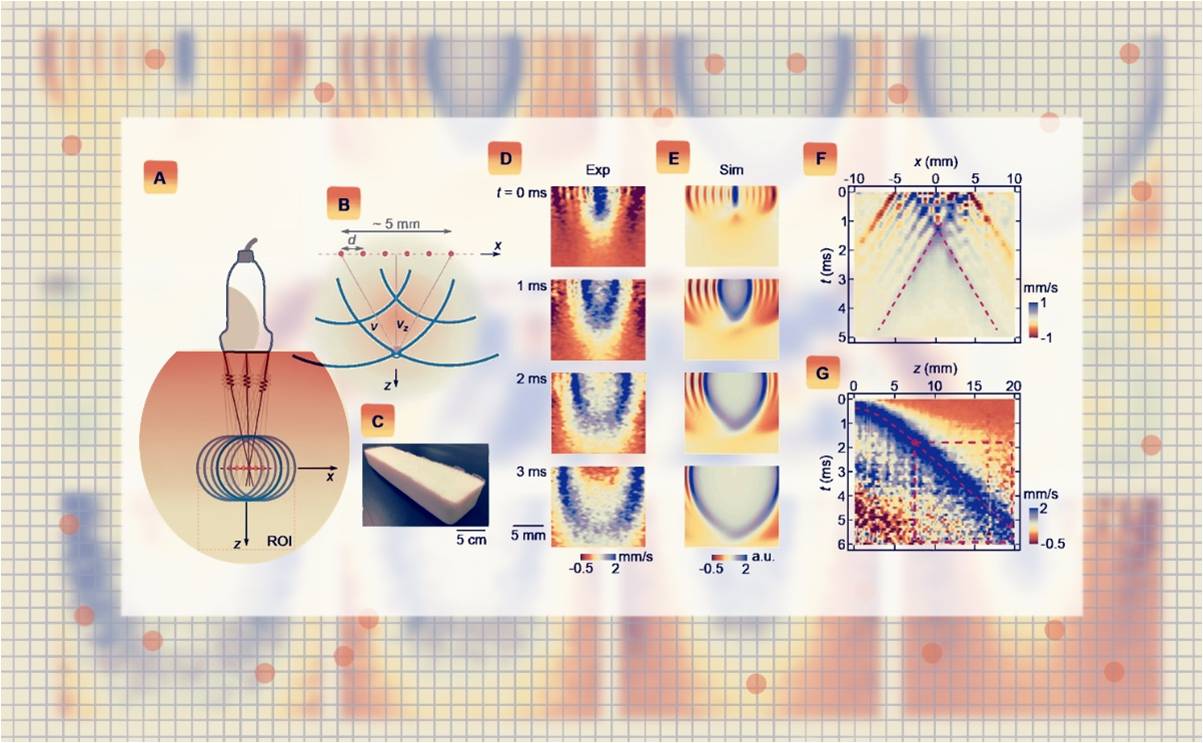 近日,航天航空学院曹艳平课题组报道了一种基于声弹原理无损表征软材料应力的方法。该方法首先通过编程声辐射力实现了在软材料内部同一位置激发出沿不同方向传播的剪切波,特别是实现了相互垂直的两个方向上剪切波的同时激发和相速度测量。