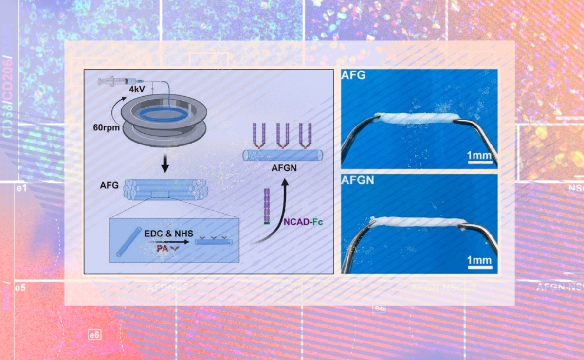 最近,乐鱼在线平台材料学院王秀梅团队和北京清华长庚医院医院神经外科王贵怀团队通过医工交叉合作,开发了一种新型的N-钙粘蛋白(NCAD)修饰的功能化定向纳米纤维水凝胶(AFGN),为NSC“量身定制”适宜的递送和生长微环境,联合治疗脊髓损伤。