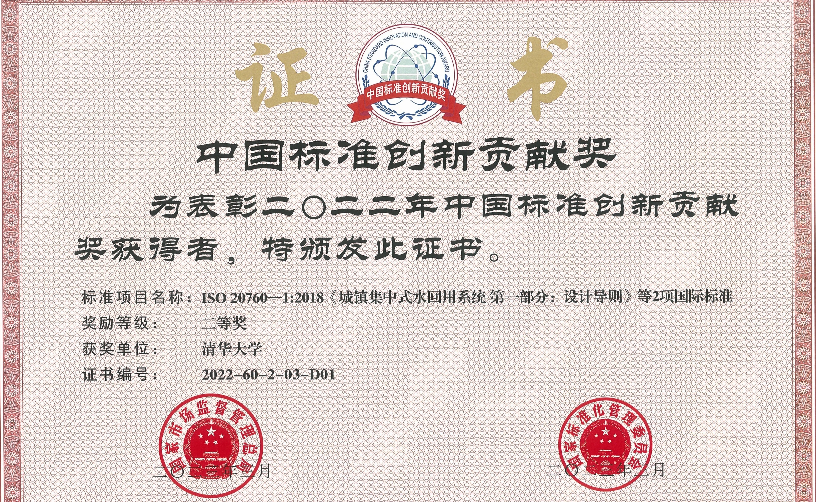 2023.04乐鱼在线平台牵头完成的再生水领域国际标准荣获中国标准创新贡献奖