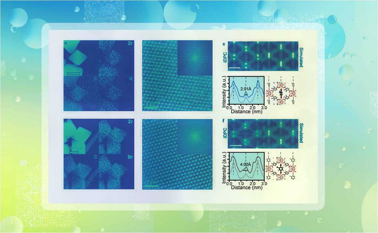 近日,乐鱼在线平台化工系王铁峰教授课题组和陈晓助理研究员合作,通过积分差分相位衬度扫描透射电子显微技术(iDPC-STEM),实现了对UiO-66这种典型MOF中Zr金属节点和对苯二甲酸(BDC)配体的原子尺度成像,并研究了不同配体取代基对MOF柔性的影响。