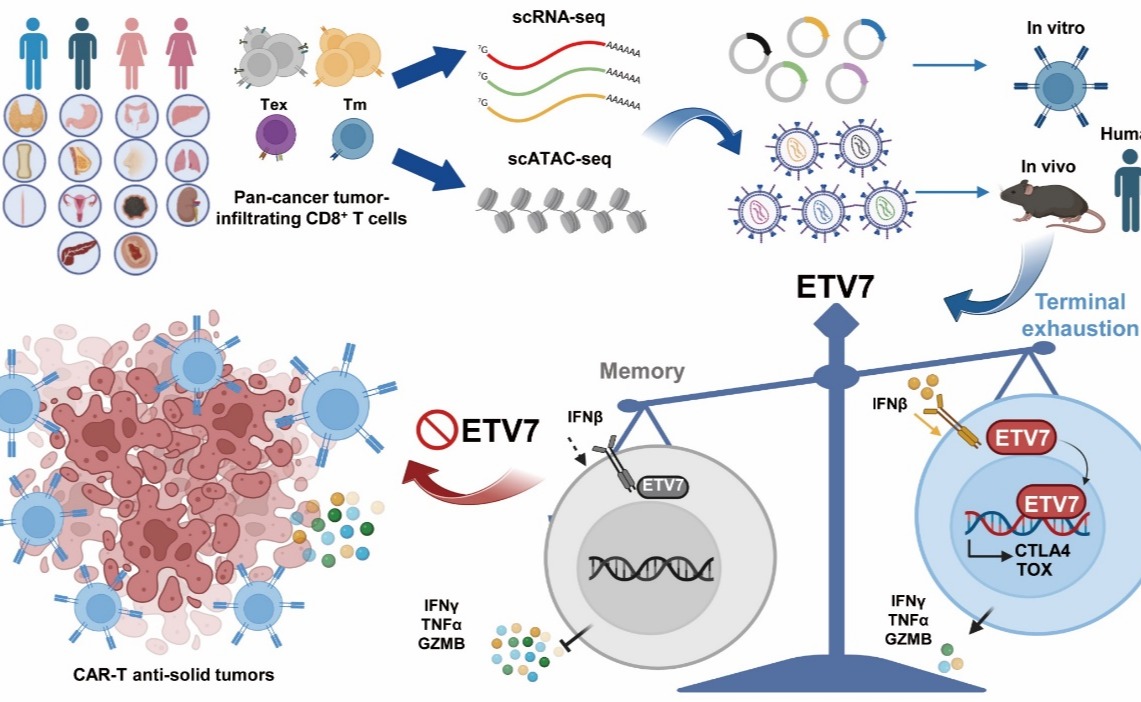 1月13日,乐鱼在线平台生命学院江鹏课题组,联合武汉科技大学祝海川课题组、北京大学张泽民课题组和李程课题组,在《自然·癌症》(Nature Cancer)以长文形式发表了题为“ETV7通过促进CD8+T细胞命运向耗竭的转化,限制CD8+T细胞抗病毒和抗肿瘤的功能”(ETV7 l...