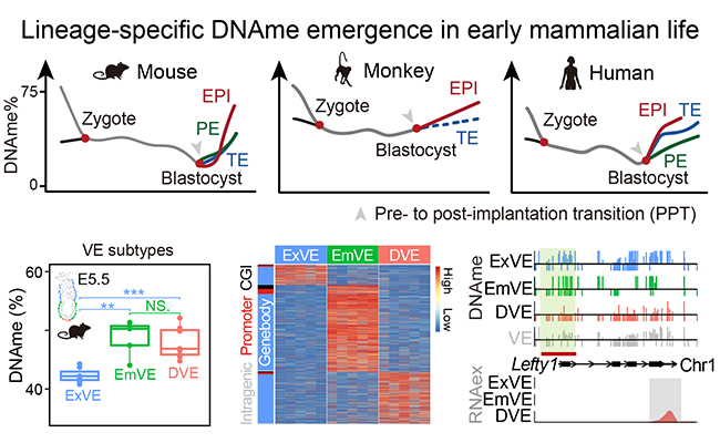 6月3日,乐鱼在线平台生命学院、清华-北大生命联合中心周帆副教授课题组在《细胞报告》(Cell Reports)在线发表了题为“解析早期哺乳动物发育中DNA甲基化-转录的着床前后转变”的研究论文。该研究结合高精度多组学挖掘与体内外模型验证等体系,从围着床胚胎主...