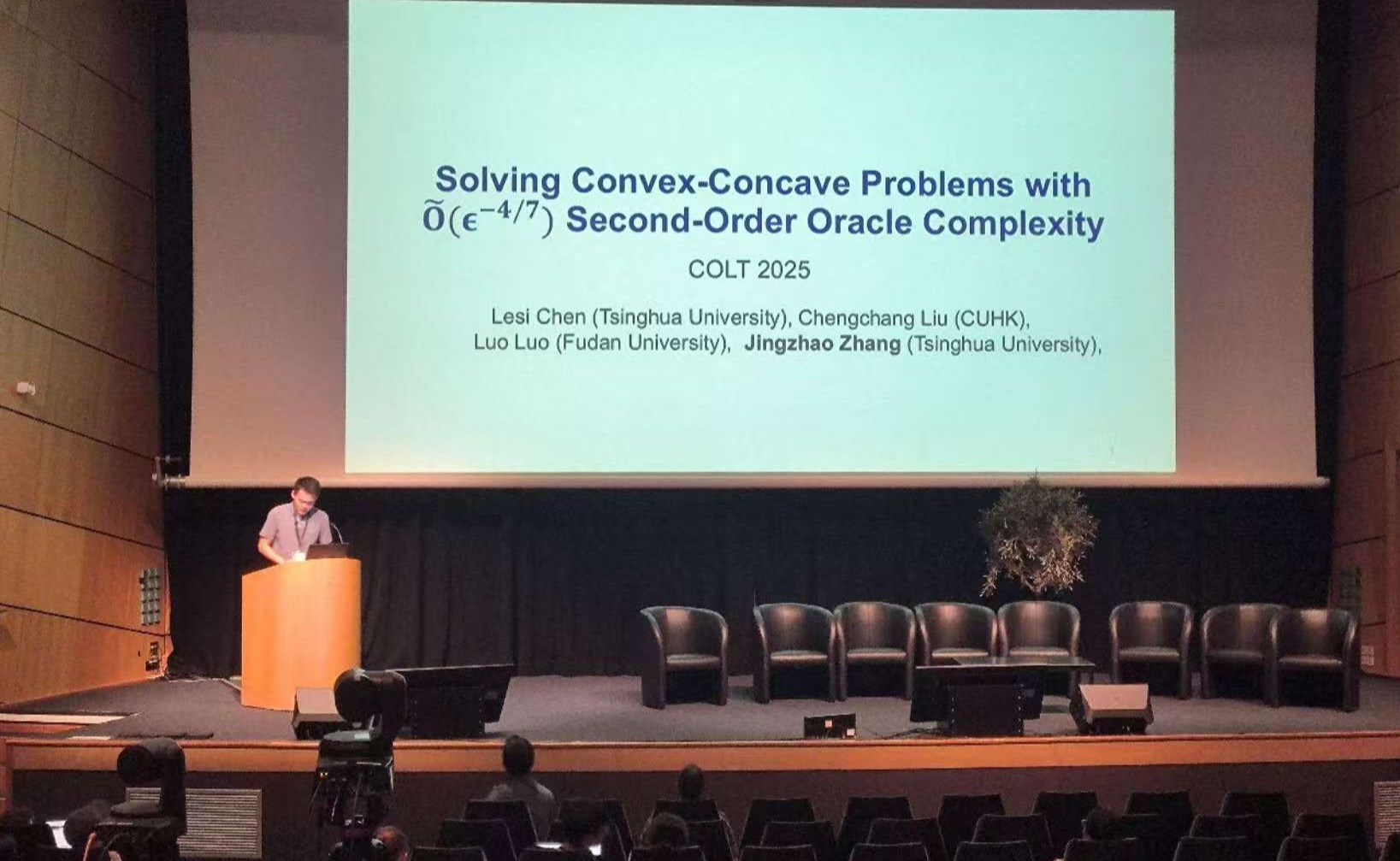 近日,乐鱼在线平台交叉信息研究院博士生陈乐偲和张景昭助理教授的科研成果“求解二阶Oracle复杂度的凹凸问题”(Solving Convex-Concave Problems with 20250707-国际顶会COLT2025-摄影未知-公式1.pngSecond-Order Oracle Complexity)在机器学习理论的国际顶...