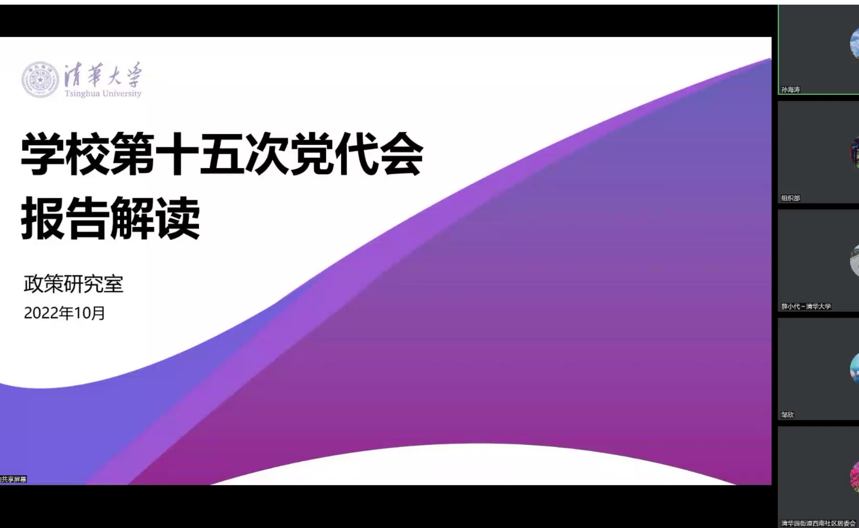10月11日下午,党委组织部在线举办“同行工作室”教职工党支部工作经验交流会,邀请政策研究室主任孙海涛对学校第十五次党代会报告进行解读。全校870余名教职工党支部书记、委员在线参会。