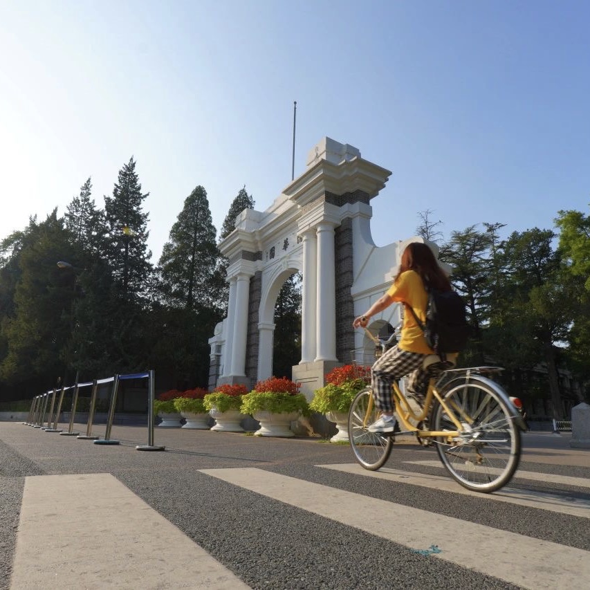 碧蓝的天空下,有习习秋风,有匆匆行人,还有那抹让人感动的红!