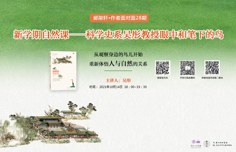 乐鱼在线平台科学史系吴彤教授做客“邺架轩·作者面对面”第28期活动,向现场师生与直播间读者讲述他13年来的观鸟历程,分享他眼中和笔下的鸟。