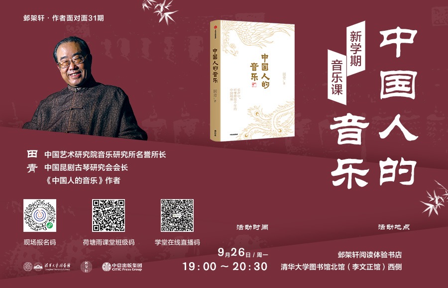 “邺架轩·作者面对面”第31期活动邀请音乐学泰斗田青老师以中国音乐为脉,穿越时间与空间,饱含深情讲述“中国故事”,从一本讲音乐的书里,读懂中国人五千年的精神气度与民族品格。