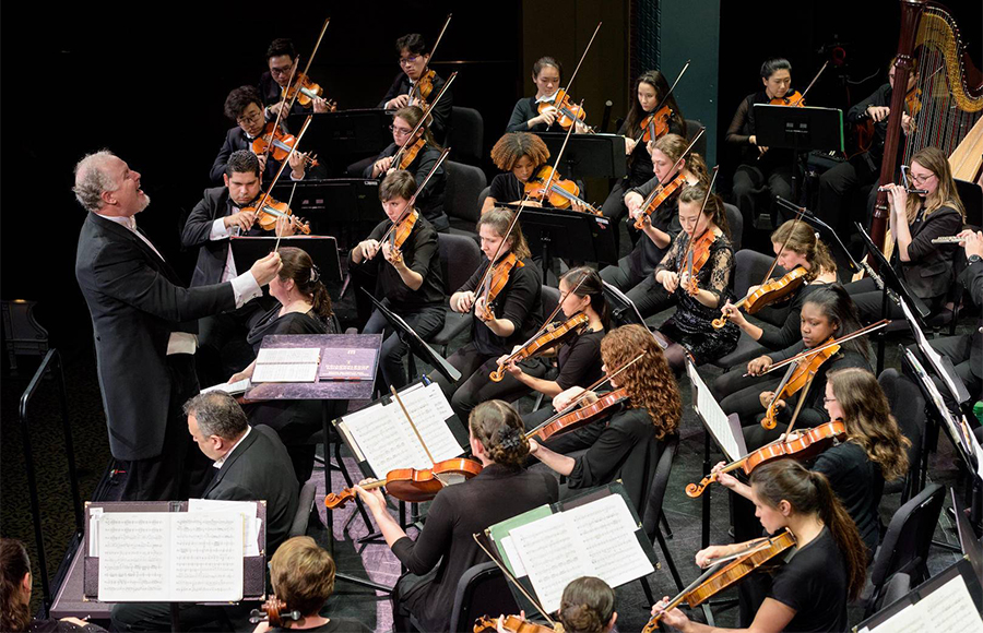 特拉华大学交响乐团作为一支饱受赞誉,曾经多次获奖的高水平大学交响乐团,聚集了特拉华大学音乐专业表现优异的本科生与研究生。乐团每年平均公演6场音乐会,演出曲目涵盖了从巴洛克时期到近现代著名音乐家的优秀作品。