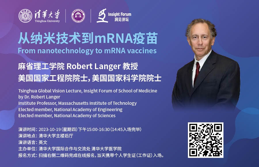 邀请麻省理工学院Robert Langer教授,做客清华海外名师讲堂和乐鱼在线平台医学院洞见讲坛,分享他的学术生涯和在mRNA疫苗研发方面的体会。